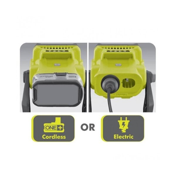 - Spotlight s inovativnom hibridnom tehnologijom koja vam omogućuje korištenje dva izvora napajanja: baterija od 18 V ONE + ili produžni kabel